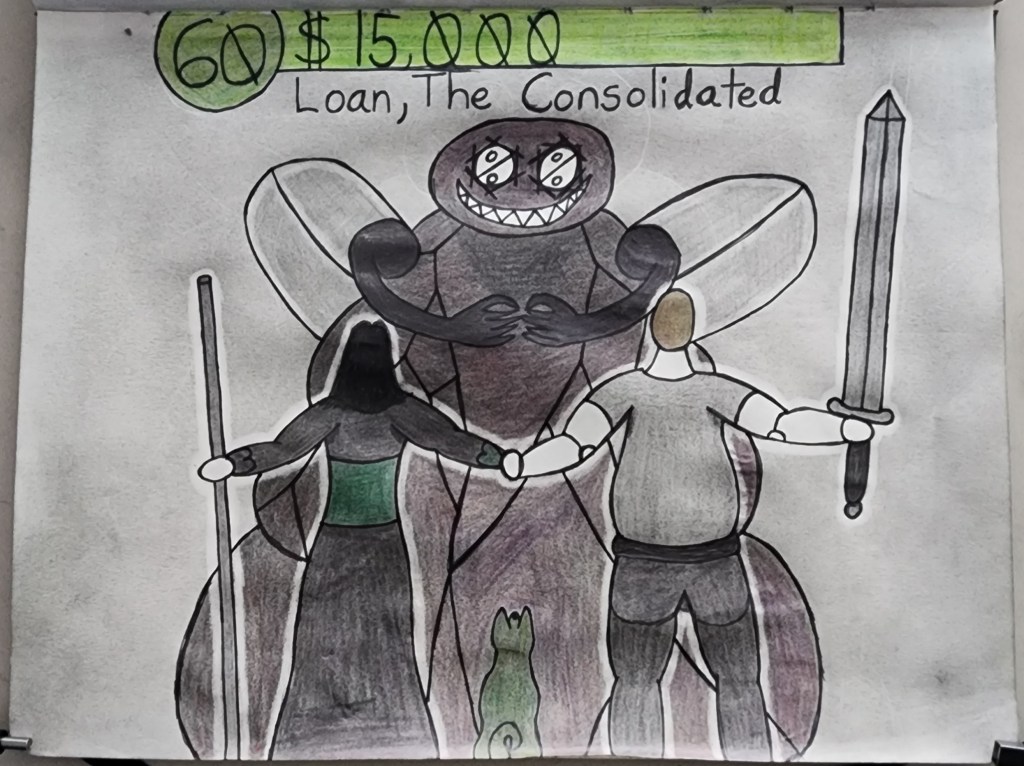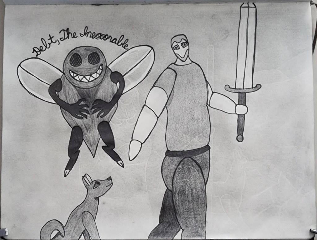 When I started drawing, I ended up making my debt a character. Debt, The Ever-Hungry.